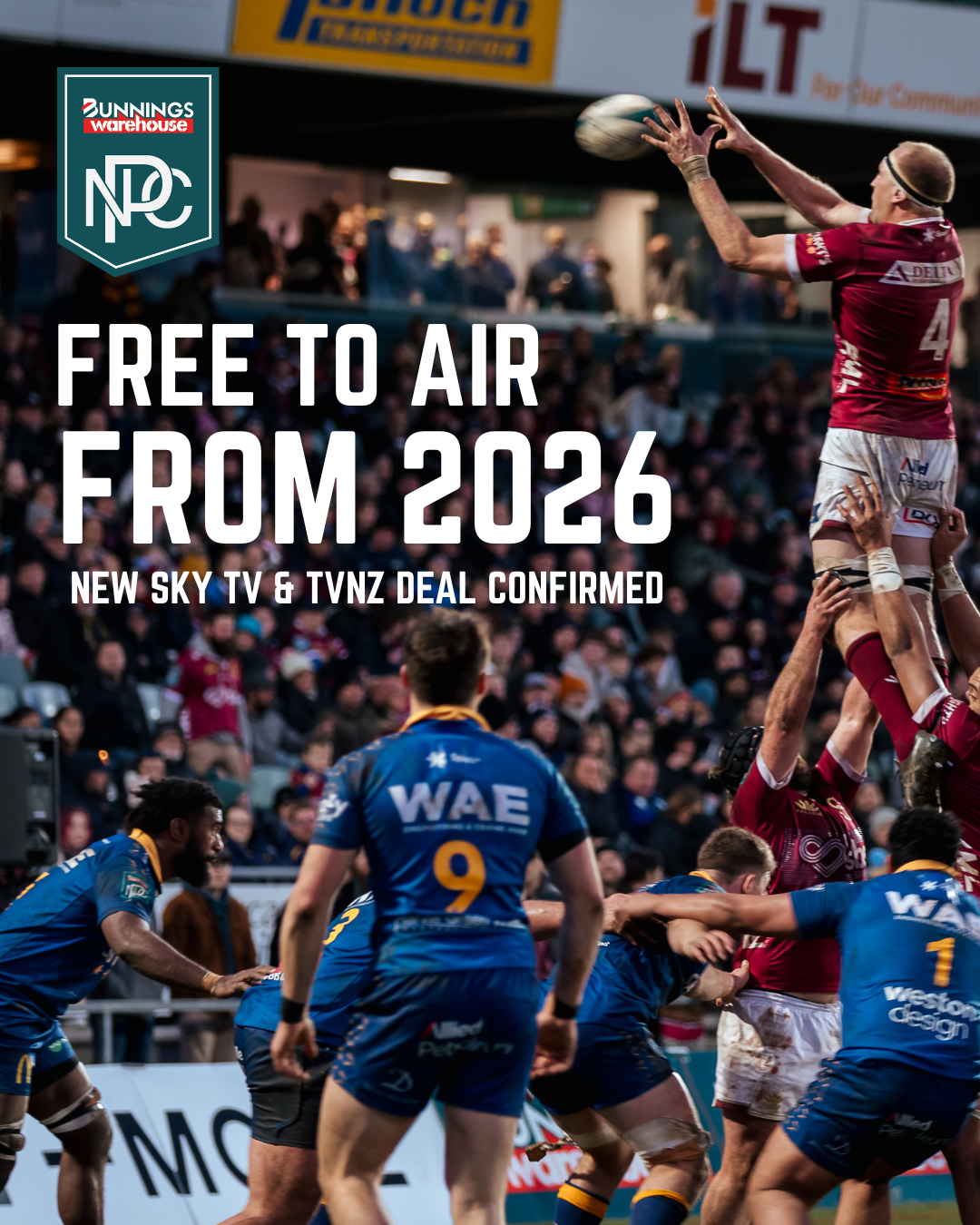TVNZ will become NZR’s free-to-air provincial rugby partner, which includes all Bunnings Warehouse NPC matches and select Farah Palmer Cup presented by Bunnings Warehouse and Bunnings Warehouse Heartland Championship games.